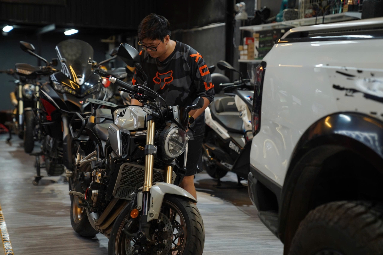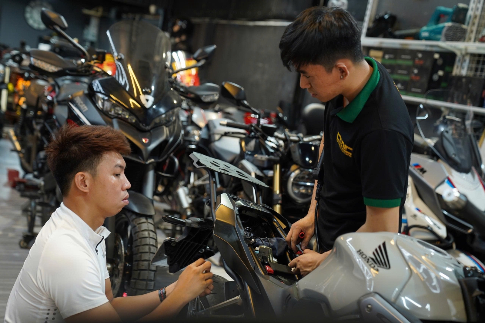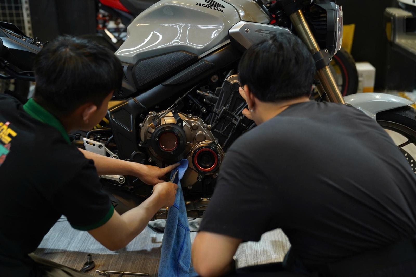 Kiểm tra và lắp thêm phụ kiện cho Honda CB650R trước khi bàn giao về tay khách hàng mới.