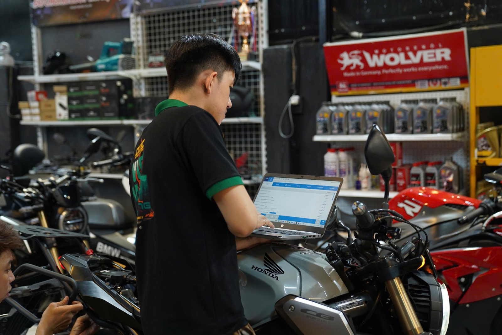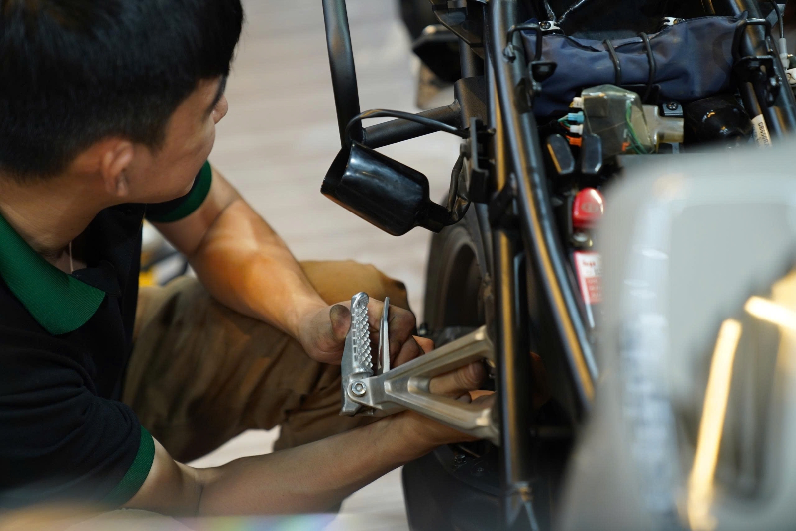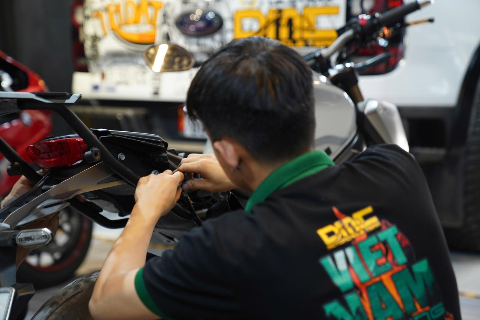 Kiểm tra và lắp thêm phụ kiện cho Honda CB650R trước khi bàn giao về tay khách hàng mới.